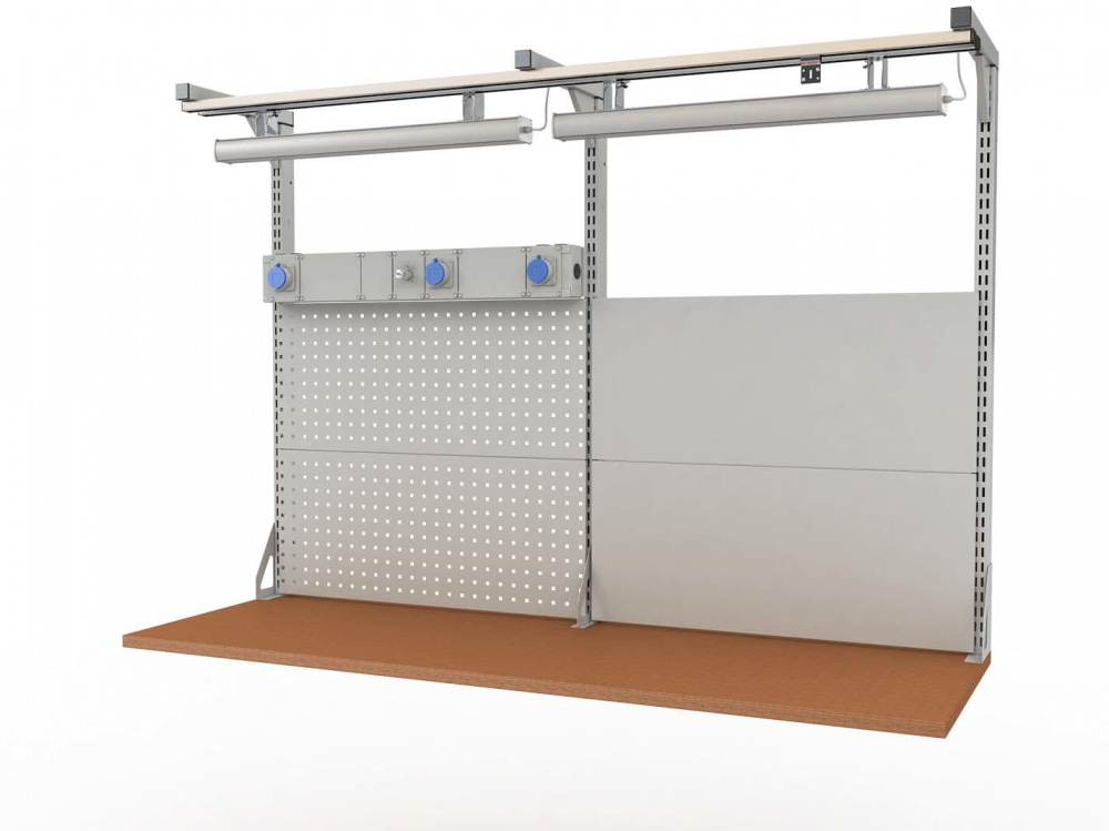 Рабочая панель крепится к столешницам рабочих столов и верстаков шириной не менее 2000 мм
